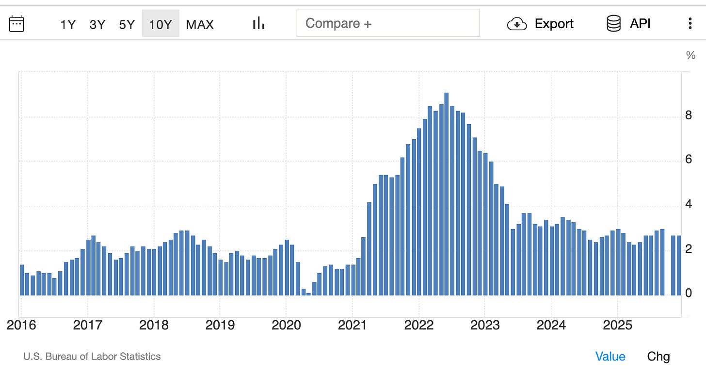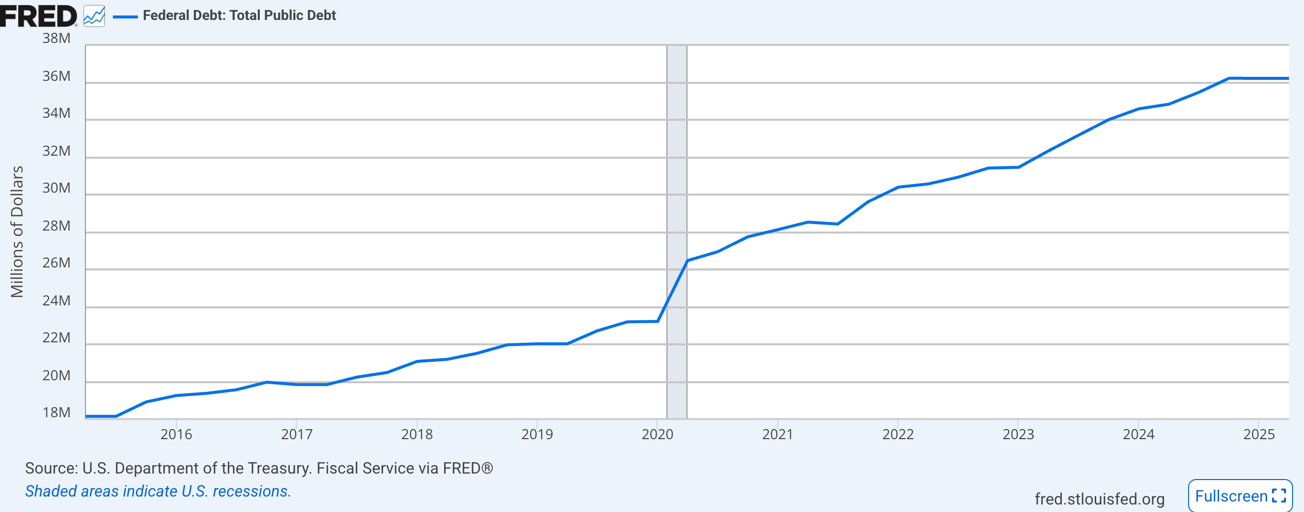In response to COVID, the United States aggressively printed money amid fears of a significant economic collapse. While perhaps prudent at the beginning of the pandemic, this policy significantly increased the money supply and, as a result, caused significant inflation, peaking at over 8% in 2022. In response, the Fed aggressively raised rates, peaking at 5.5%, before bringing inflation under control. Despite inflation coming down aggressively, it still notably lags its historic 2% rate in recent years and has been stubbornly stuck at 3%. At 3% inflation, the cost of goods will double every 23.5 years. A significant difference compared to 2%, where the cost of goods doubles every 35 years. Inflation being 50% higher than the historic average adds up, and I personally believe these higher inflation levels are here to stay. Not only is our money less valuable than it was just a few years ago, but the value is depreciating faster than ever.