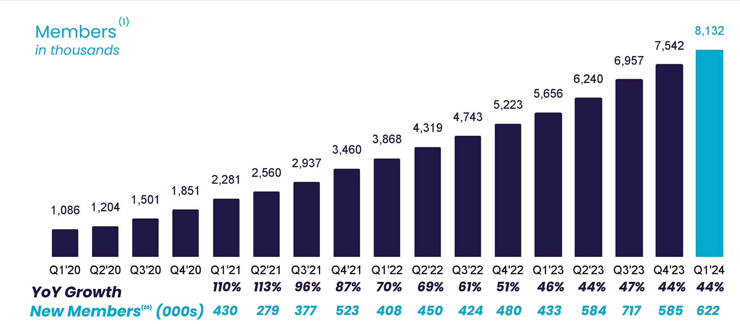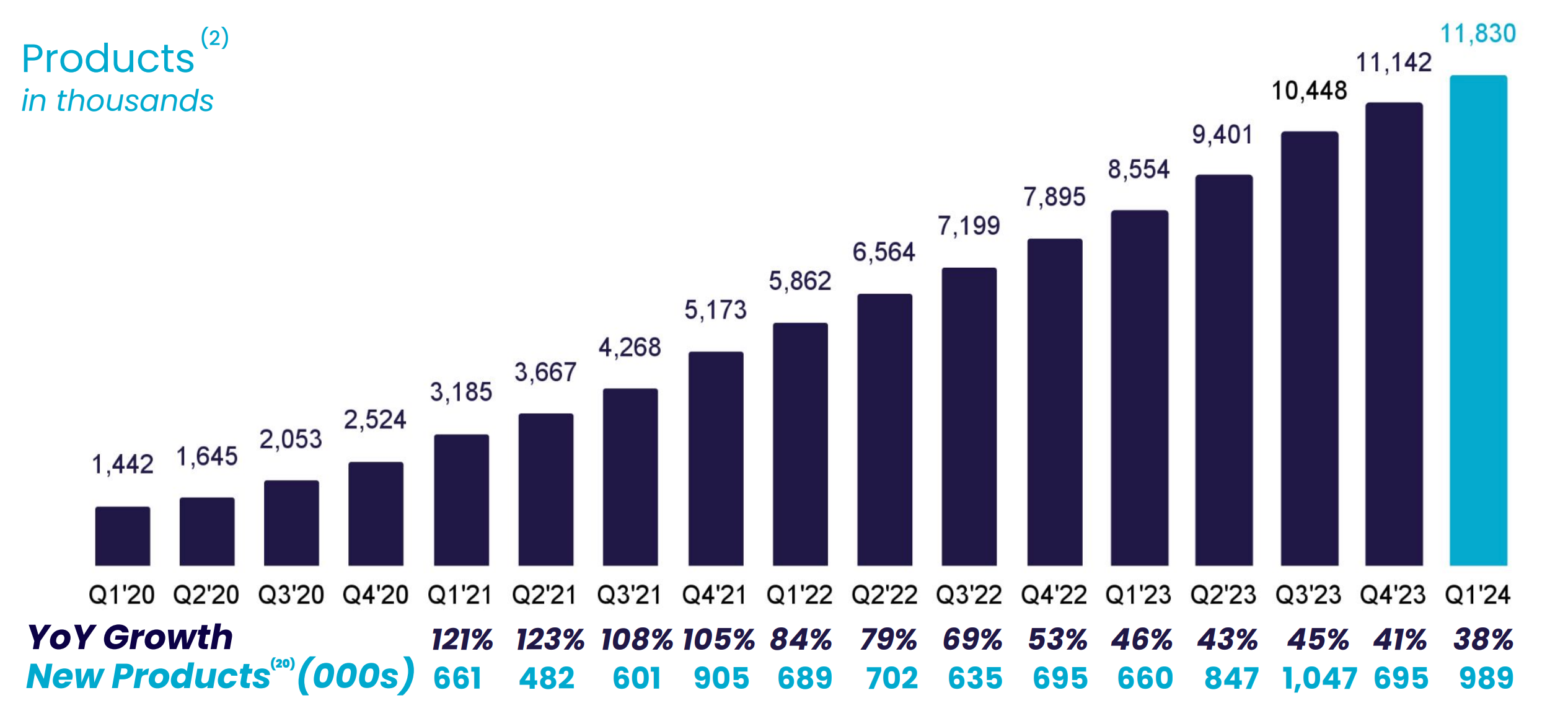 SoFi’s Total Products refers to the aggregate number of lending and financial services products that members have selected on the platform since inception through the reporting date, whether or not the members are still registered for such products. I personally find this bizarre and I do not know why they wouldn’t focus on total active products. A product that is no longer being used doesn’t generate revenue and therefore is a useless KPI. Given the obscurity of the metric and the required guess work, we will ignore it. Below you can see their product growth.