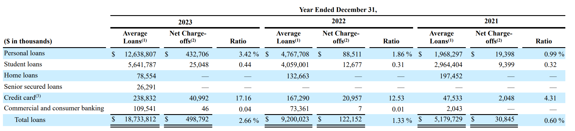 There are good and bad aspects of SoFi's net charge-offs. The good news is their current numbers are not that high, with 2.66% of total loans having a net charge-off. The bad news is that this number has been slowly increasing, which could mean that some of the older loans they issued were not of good quality. How concerning this is will depend on how 2024 goes. So far in Q1, they saw a minor reduction in net charge-offs to 2.65%. Ideally, this number remains stable because if it increases long-term, it suggests they might have a lot of bad debt. 2.65% is in line with their expectations so I don’t want to give the wrong impression here.