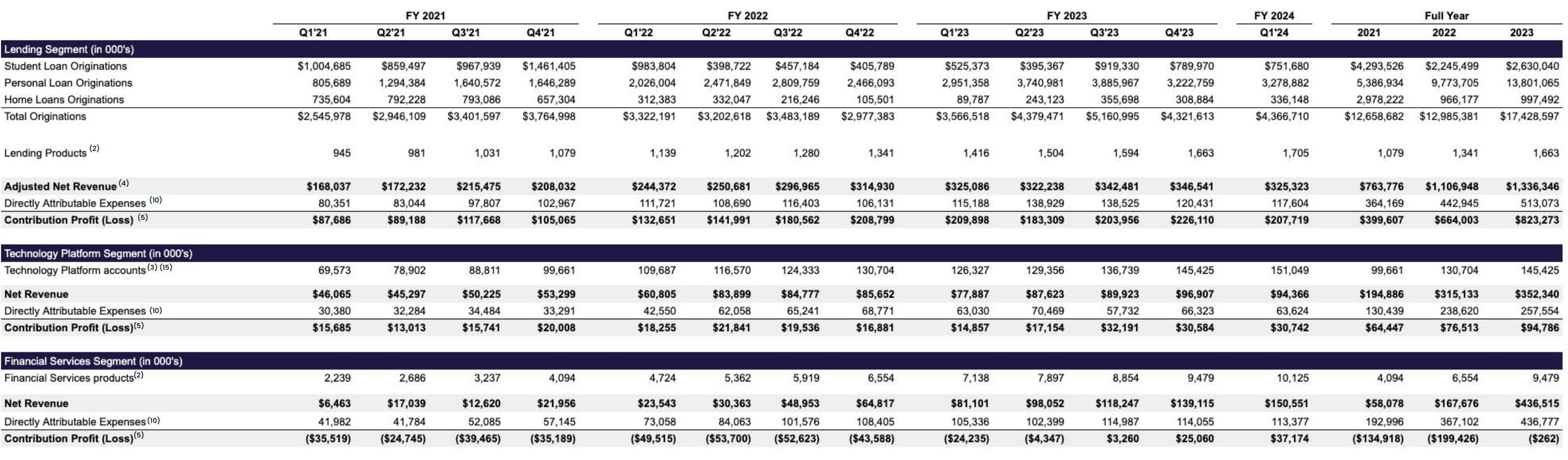 As a whole, the financial services segment is at a turning point and I believe will continue to grow the fastest of SoFi's three segments in the next few years. Ideally, SoFi will drive both deposit and credit lending growth. If they do both successfully, it should drive very solid profits. If this business is struggling going into 2025, then I do think investors should be very concerned.